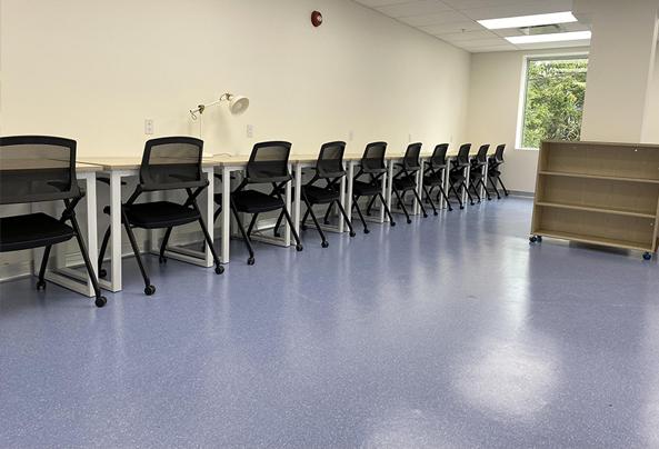 在美观方面,leyu乐鱼同质透心地板为St.John's Academy的教室增添了独特魅力。学校巧妙选用亮丽蓝色和米白色的leyu乐鱼地板,蓝色如同窗外的湖水,纯净清澈,有助于激发学生的灵感和想象力;米白色则如象牙般晶莹整洁,让学生心态平和宁静。两种颜色搭配,让教室充满活泼的青春气息,构建出令人向往、充满探索欲的教育空间,让孩子们更愿意沉浸在学习中。